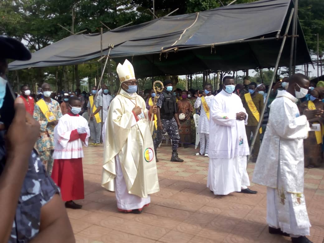 La messe d’ouverture du pèlerinage présidée le 20 août 2021 au soir, par Son Excellence Mgr François GNONHOSSOU, sma, évêque du diocèse de Dassa-Zoumé, a été animée par la Maîtrise du diocèse de Dassa-Zoumé. Toutes les activités prévues dans le cadre de ce pèlerinage se sont déroulées sans anicroches, avec comme points d’orgue la procession au flambeau avec la statue de la Vierge Marie et la messe des nouveaux prêtres des années 2020 et 2021. Une attention particulière a été accordée à la célébration, par Son Excellence Mgr Martin ADJOU-MOUMOUNI, évêque de N’Dali, de la messe pour les malades, dans le sanctuaire marial. Le recours au sacrement de réconciliation et de pardon a été observé par plusieurs pèlerins, qui sont repartis réconfortés et raffermis dans leur foi, sous la protection de la Bienheureuse Vierge Marie.