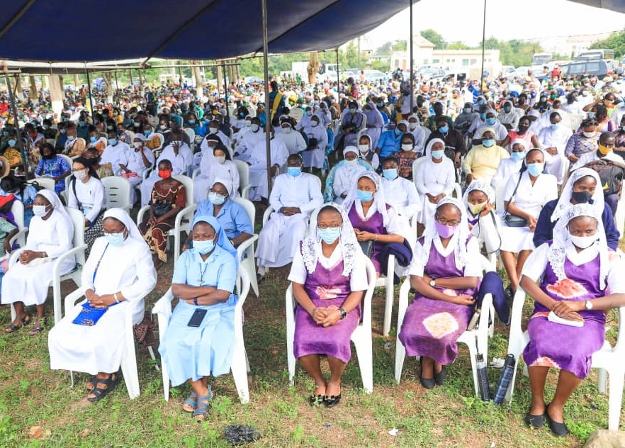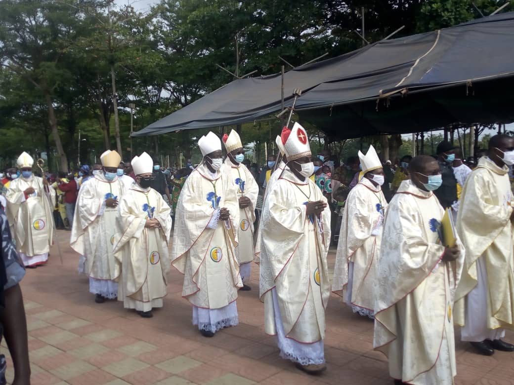 Dans le respect des gestes- barrières contre la pandémie de la Covid-19 exigé par le gouvernement béninois ainsi que la Conférence Episcopale du Bénin, la 67ème Edition (1954- 2021) du Pèlerinage marial national à la Grotte Notre-Dame d’Arigbo de Dassa-Zoumé s’est tenue les 20, 21 et 22 août 2021. Autour du thème « Tous frères sous le manteau virginal de Marie, Etoile de l’évangélisation », des milliers de pèlerins et de pèlerines, venus de tous les dix diocèses de l’Eglise au Bénin et d’ailleurs, ont vécu cette marche de trois jours dans la foi et la prière. En leur faveur, le révérend père Barnabé BOCOVO, curé de la paroisse Saint Lucien d’Ahouaga à Abomey, a développé sous forme de catéchèse ce thème dans la matinée du samedi 21 août 2021. C’était à travers une belle conférence donnée en français, mais traduite en fon, Anglais, Yoruba et Bariba, où le conférencier a défini en cinq points principaux comment la Vierge Marie a évangélisé. L’invité d’honneur de cette 67ème édition du pèlerinage, qui présida la messe pontificale de clôture, est Son Eminence John Olorunfemi Cardinal ONAIYEKAN, archevêque émérite d’Abuja, au Nigéria.
